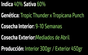 Cerecita#89 Es una cepa de cannabis que es una bomba! Surge del cruce entre dos variedades súper potentes y con sabores únicos: Tropic Thunder y Tropicana Punch. Esta mezcla genética crea una planta con personalidad propia y un colocón que te deja flipando.