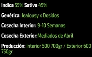 Así que ya sabes, si quieres una experiencia de cannabis que lo tiene todo, la Jealousy x Dosidos es tu cepa. ¡No te la pierdas!