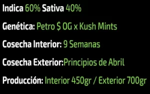 Así que si buscas algo para relajarte después de un largo día o para inspirarte en tus proyectos creativos, ¡Petro $ OG x Kush Mints es tu mejor opción! Esta cepa es una verdadera joya del mundo del cannabis, y una vez que la pruebes, ¡no podrás resistirte a su encanto!