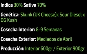 Producción indoor: 450-550 g/m² si la trabajas bien.