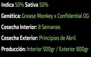 Confidential OG es una variedad ampliamente conocida por los seguidores del banco, reconocida por su efecto sedante potente, característico de las índicas de calidad. Aunque no produce grandes cantidades de cogollos, la calidad de sus flores es excepcional, con un aroma distintivo muy apreciado por los amantes de las genéticas OG Kush, que resaltan sabores terrosos y dulces a hachís de la vieja escuela.