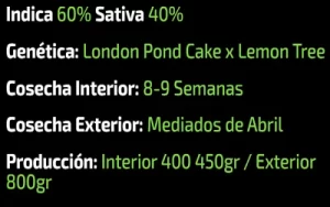 Cada cogollo es un tesoro aromático, cada planta una promesa de satisfacción y deleite. London Citrus Cake no solo ofrece una experiencia de cultivo gratificante, sino que también regala a los consumidores un festín para los sentidos, una indulgencia aromática y gustativa que cautiva y encanta. En resumen, esta cepa es una oda a la excelencia y una invitación a saborear lo mejor que la naturaleza tiene para ofrecer